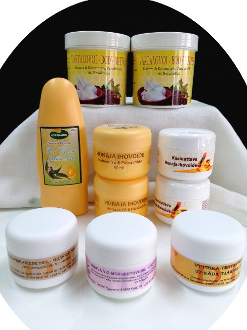 - Verkkokaupastamme löytyy myös esimerkiksi käsivoide, joka sisältää ihoa hoitavaa propolista.
