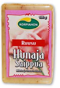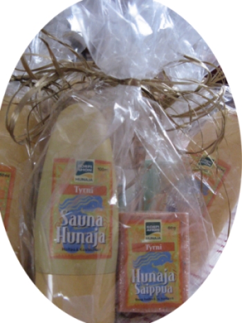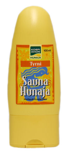 Tyrnisaunahunaja - sisältää tyrnirouhetta, joka kuorii ihoa, samalla tyrni ja hunaja ravitsevat ihoa.